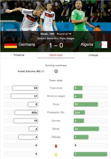 Sau bàn thắng này, hàng thủ Đức chơi chủ quan, tạo cơ hội cho Algeria có bàn rút ngắn tỷ số xuống còn 1-2. Người ghi bàn là Djabou. Đó cũng là tất cả những gì mà "chú cáo châu Phi" làm được ở trận này.