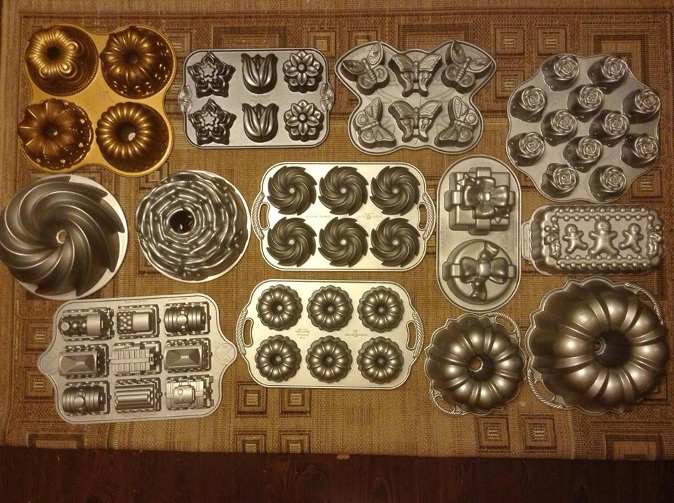 Kèm theo những bức ảnh này là lời chia sẻ: “Khoe các bạn bộ sưu tập khuôn Nordic Ware của mình. Với 1 người không ở Mỹ như mình thì đây hẳn là 1 gia tài đấy. Nướng các loại cake bơ, hoặc cái nào nhỏ nhỏ như bánh sò cũng ok. Mình nướng cả bánh phomai tươi cũng rất đẹp.”