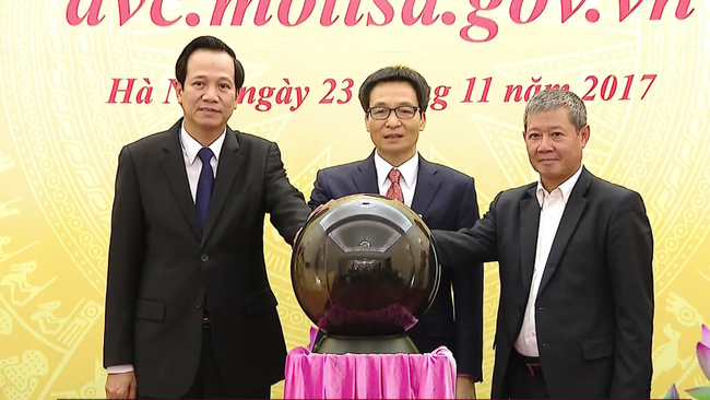 Phó Thủ tướng Vũ Đức Đam đến dự và bấm nút khai trương Cổng dịch vụ công trực tuyến của Bộ Lao động - Thương binh và Xã hội.