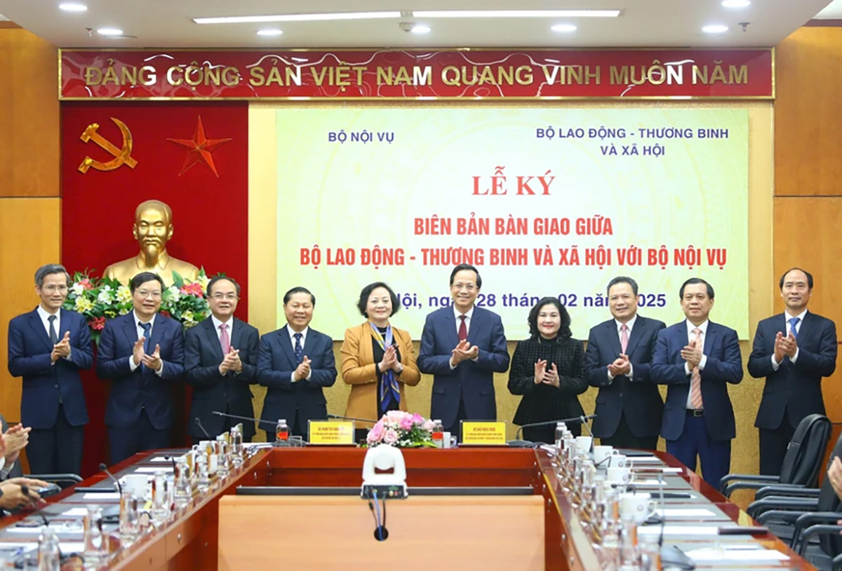 Lễ bàn giao giữa Bộ Lao động-Thương binh và Xã hội với Bộ Nội vụ diễn ra chiều 28/2 để hoàn tất quá trình hợp nhất hai bộ, thực hiện cuộc cách mạng tinh gọn bộ máy. Lễ bàn giao diễn ra tại trụ sở Bộ Nội vụ, số 8 Tôn Thất Thuyết, Hà Nội. Theo biên bản bàn giao, hai Bộ trưởng thực hiện việc bàn giao hồ sơ tài liệu, tổ chức, nhân sự, tài chính… của 29 đơn vị thuộc Bộ Lao động-Thương binh và Xã hội bảo đảm đúng quy định hiện hành.