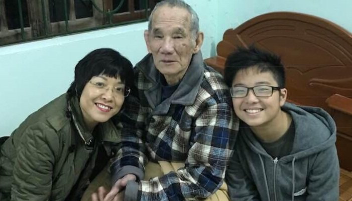 MC Thảo Vân chụp ảnh bên bố đẻ và con trai.