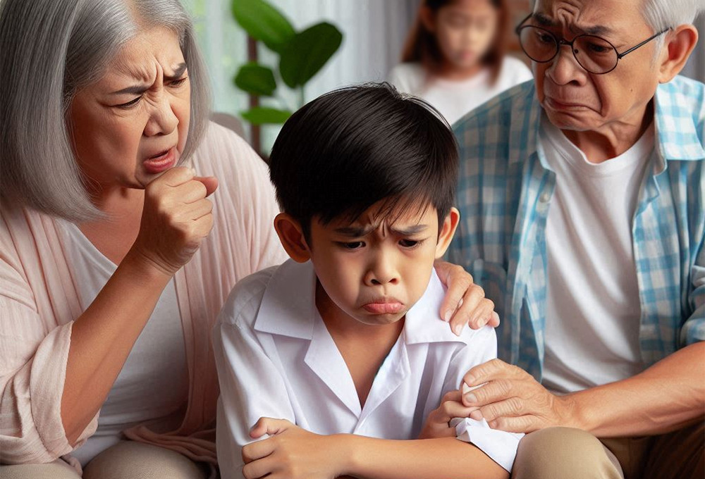 Mỗi lần con hư, tôi muốn uốn nắn là ông bà nội lại bênh. (Ảnh minh họa: AI)