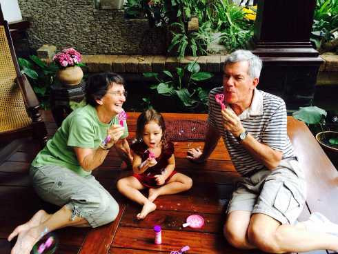 | Ca sỹ Hồng Nhung chia sẻ trên trang cá nhân những hình ảnh hạnh phúc của gia đình khi ông bà nội từ Mỹ sang thăm hai bé Tôm và Tép. |