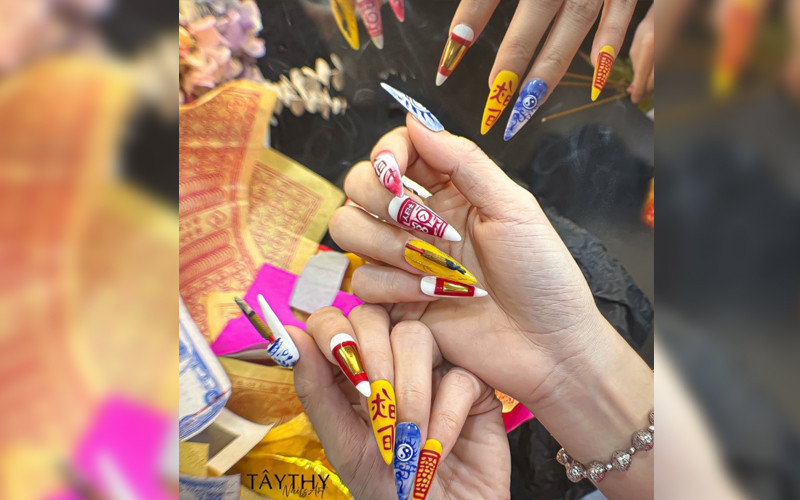 Một TikToker "bắt trend" chủ đề tháng cô hồn bằng cách thực hiện bộ móng có hoa văn vàng mã được giới thiệu là "dành cho những ai chưa có người theo đuổi".
