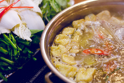 Thêm một chút rau sống, rau giá, dứa cà rốt thái chỉ,vài ba lát dưa chuột… chấm cùng tương bần sẽ cảm nhận được hương vị quê hương tan trong miệng. Nếm một chút nước nhúng dấm, cảm giác chua thanh mát sẽ kích thích vị giác tới những miếng cuối cùng.
