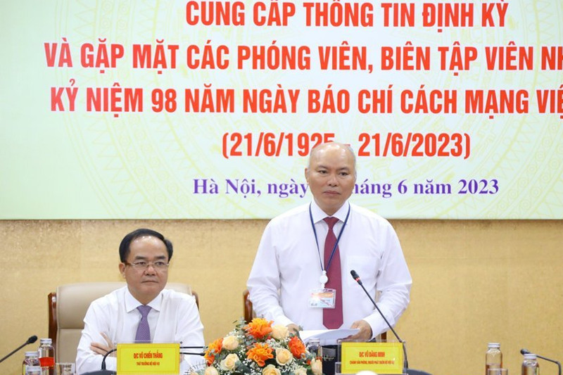 Ông Vũ Đăng Minh - Chánh Văn phòng, người phát ngôn Bộ Nội vụ (đứng) trả lời báo chí chiều 16/6.