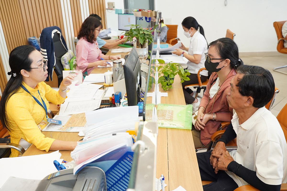Cán bộ tại bộ phận một cửa Quận 5, TP.HCM giải quyết thủ tục hành chính cho người dân. (Ảnh: Thuận Văn)