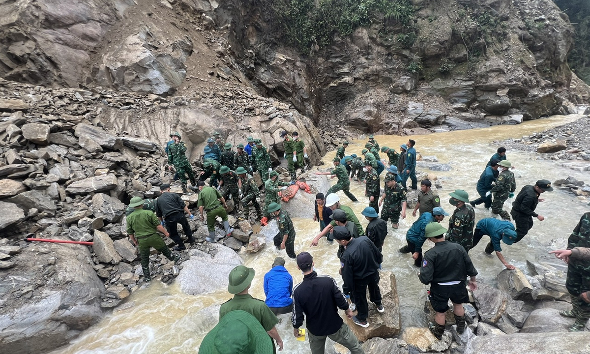 Các lực lượng tìm kiếm nạn nhân vụ sạt lở tại công trình thủy điện Tả Páo Hồ 1A (tỉnh Lai Châu), hồi tháng 5. (Ảnh: Báo Quân đội Nhân dân)