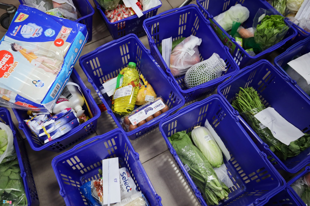 Hiện các siêu thị tại TP.HCM cũng bán nhiều đơn hàng thực phẩm theo combo. Ảnh: Phương Lâm.