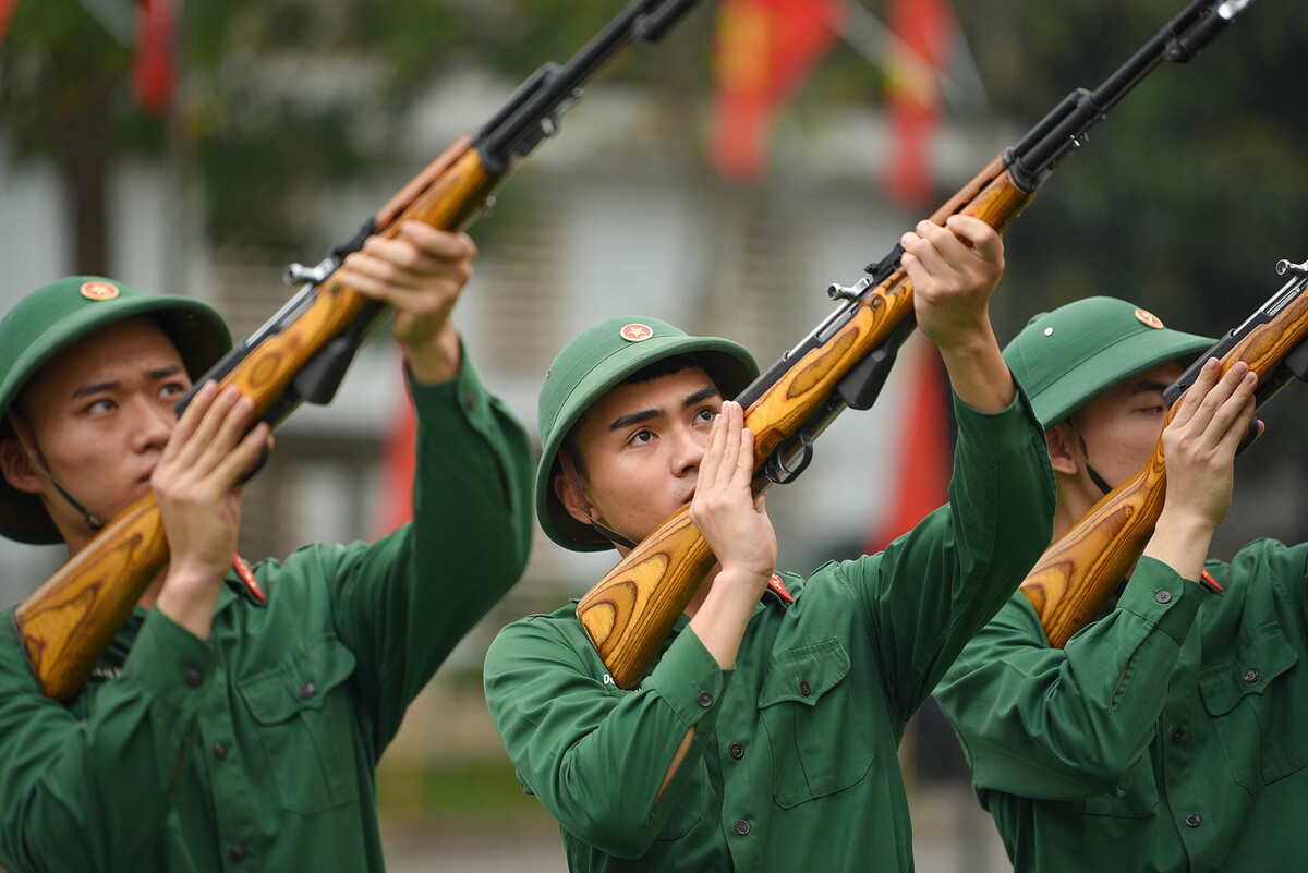 Chiến sĩ Đoàn 275, Bộ tư lệnh Lăng Chủ tịch Hồ Chí Minh luyện tập ngắm súng.