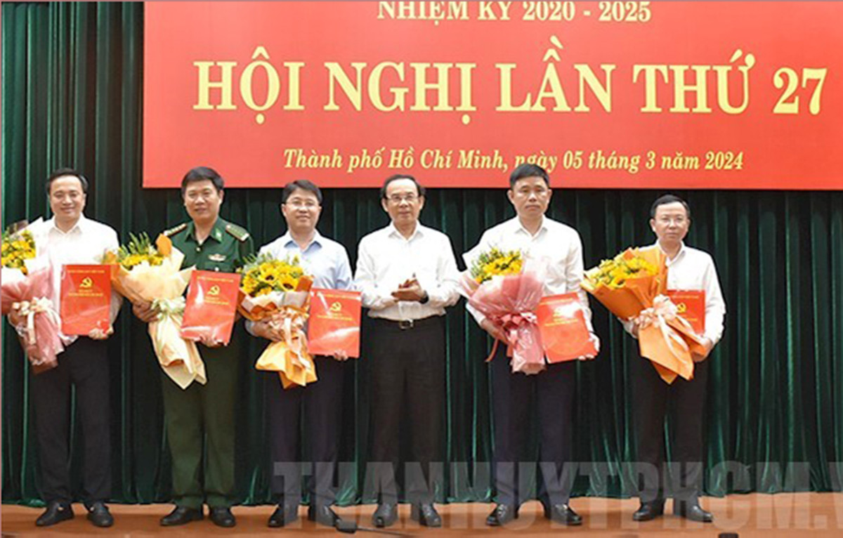 Phát biểu tại buổi trao quyết định, Bí thư Thành ủy TP.HCM Nguyễn Văn Nên chúc mừng 5 cán bộ vừa được Ban Bí thư chỉ định tham gia vào Ban Chấp hành Đảng bộ TP.HCM.