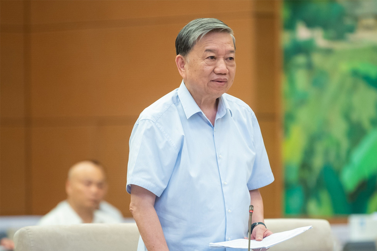 Bộ trưởng Công an Tô Lâm trình bày tờ trình dự thảo nghị quyết.
