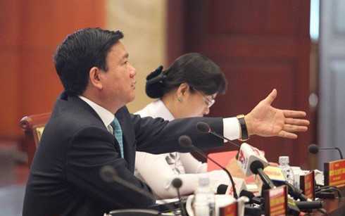 | Bí thư Thăng chất vấn lãnh đạo ngành hải quan TP HCM. (Ảnh: NLĐO) |