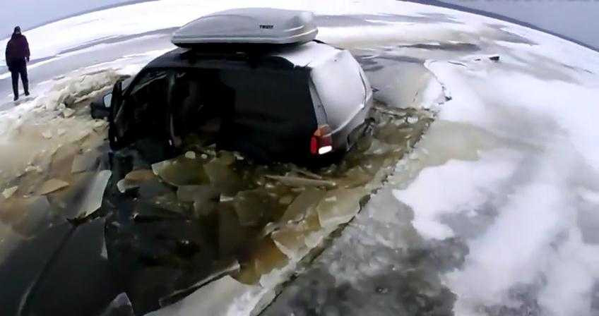 Bó tay nhìn ô tô chìm xuống hố băng