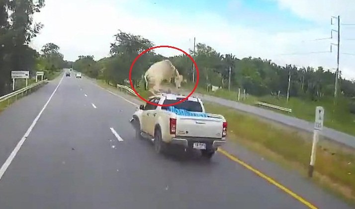 29/10/2017 11:36:00 +07:00Chú bò trắng thơ thẩn sang đường, bị xe bán tải húc văng xa hàng chục mét, tai nạn xảy ra tại Thái Lan.