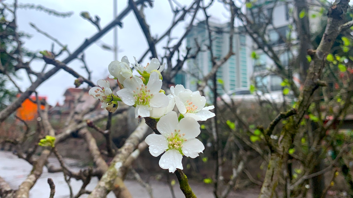 Những cành hoa lê được vận chuyển qua các con phố, giao đến tận tay khách hàng, gợi nhớ đến không khí Tết còn vương vấn.