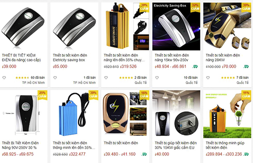 Quả thật các thiết bị, thẻ tiết kiệm điện đang được bán rất phổ biến, đặc biệt trên mạng mà theo như quảng cáo có thể giảm 30-40 % hoá đơn tiền điện. Phần lớn có nguồn gốc từ Trung Quốc, số ít thì được giới thiệu là từ Hàn Quốc nhưng đều không được nhập chính thức mà theo đường tiểu ngạch.