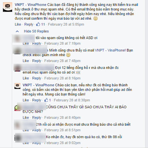 Bên cạnh giá cước khá "đắt đỏ", việc đăng ký sim cũng khiến nhiều người dùng bức xúc trong ngày 28/2 về việc không đăng ký được sim và không nhận được email phản hồi. Nhiều người dùng đã lên tiếng trên Fanpage của nhà mạng.