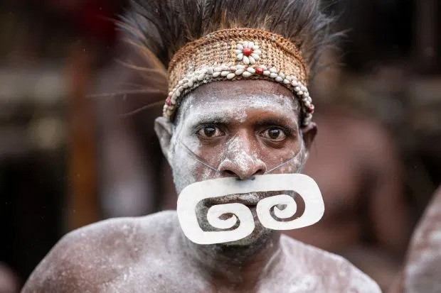 Chân dung một bé trai của bộ tộc ăn thịt người ở New Guinea.