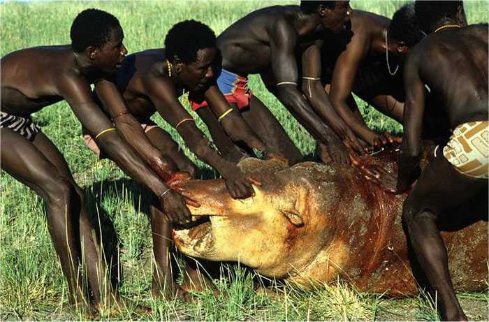 Việc săn bắt cá sấu và hà mã là nhiệm vụ của những người đàn ông khỏe mạnh của bộ tộc. Mỗi khi hạ được một con vật, họ chia đều cho mọi người, cùng nhau thưởng thức thành quả.