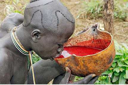Truyền thống uống máu tươi, lấy trực tiếp từ cơ thể bò đã có từ lâu đời và đến bây giờ vẫn vậy.