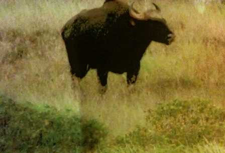 Ảnh chụp chú bò rừng gần khu vực đường lăn sân bay trong chiều muộn ngày 23.7 (Ảnh: Báo Giao thông vận tải)