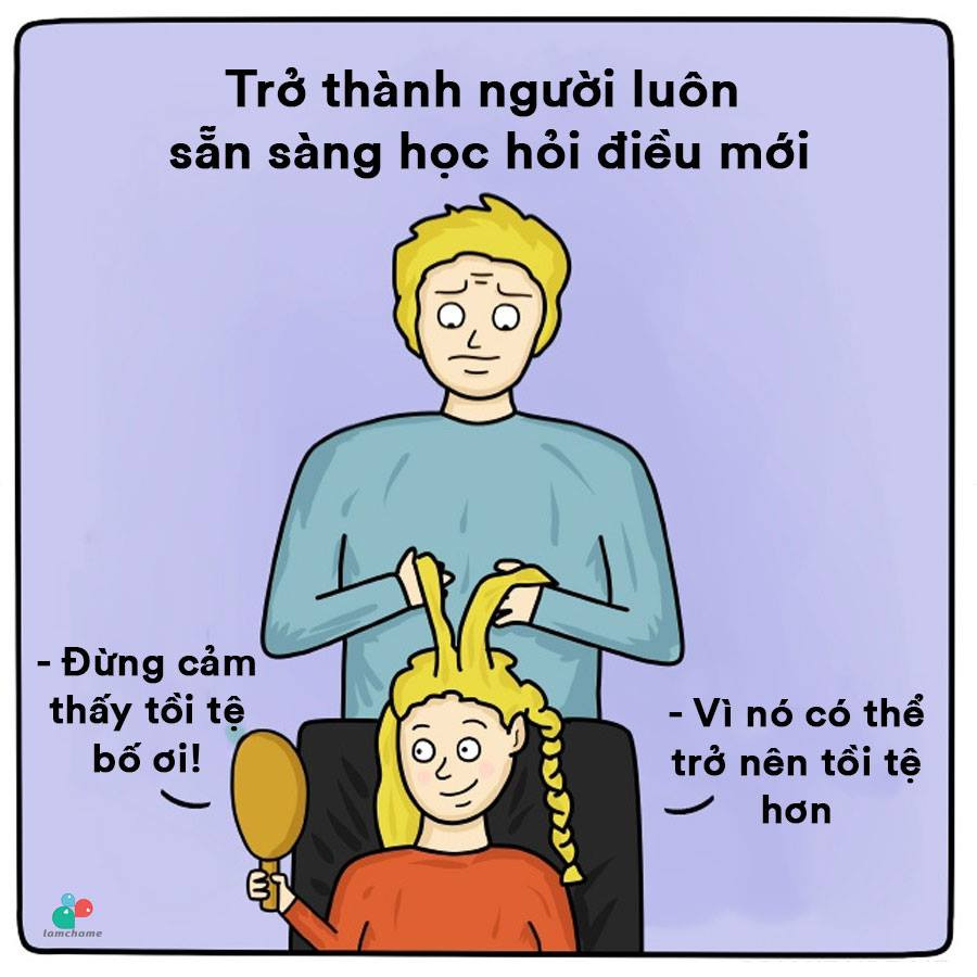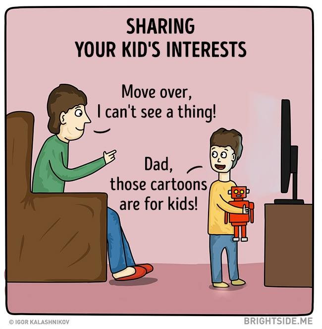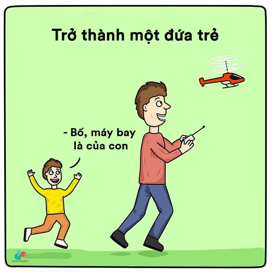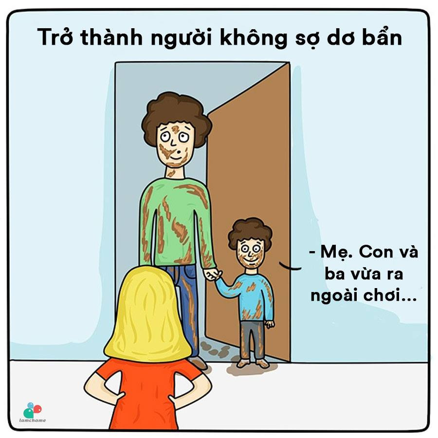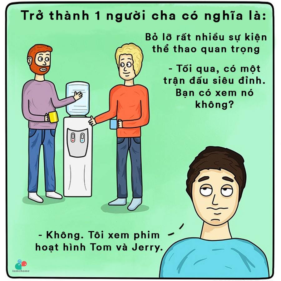 “Mẹ yêu con bằng dòng sữa ngọt. Cha yêu con bằng giọt mặn mồ hôi”. Làm bố không đơn giản mà đó là một hành trình dài chuẩn bị. Bộ tranh phần nào nói lên tấm lòng và tình yêu của cha dành cho con cái. Không giống như tình yêu của mẹ được thể hiện qua những cái ôm, những lời động viên ngọt ngào mà tình cảm của cha có thể gai góc, đanh thép nhưng cũng như mẹ, cha luôn mong những điều tốt đẹp đến với con cái.
