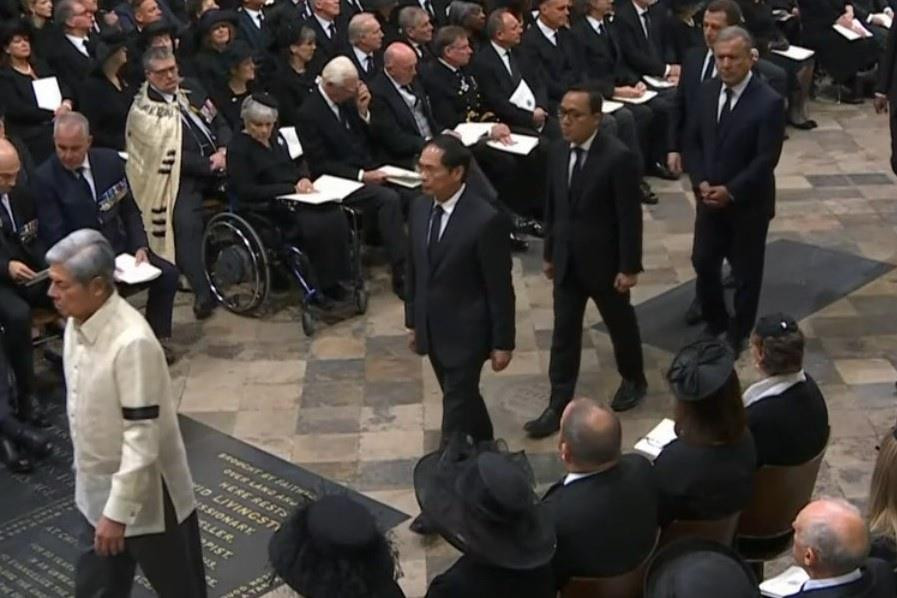 Bộ trưởng Ngoại giao Bùi Thanh Sơn dự tang lễ Nữ hoàng Elizabeth II hôm 19/9. (Ảnh: Sky News)