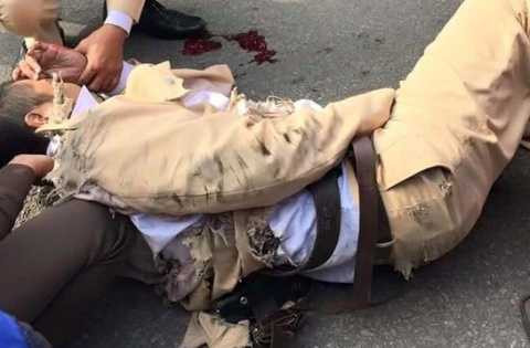 | Thượng úy Nguyễn Quốc Đạt bị xe tải kéo lê hàng chục mét trên đường |