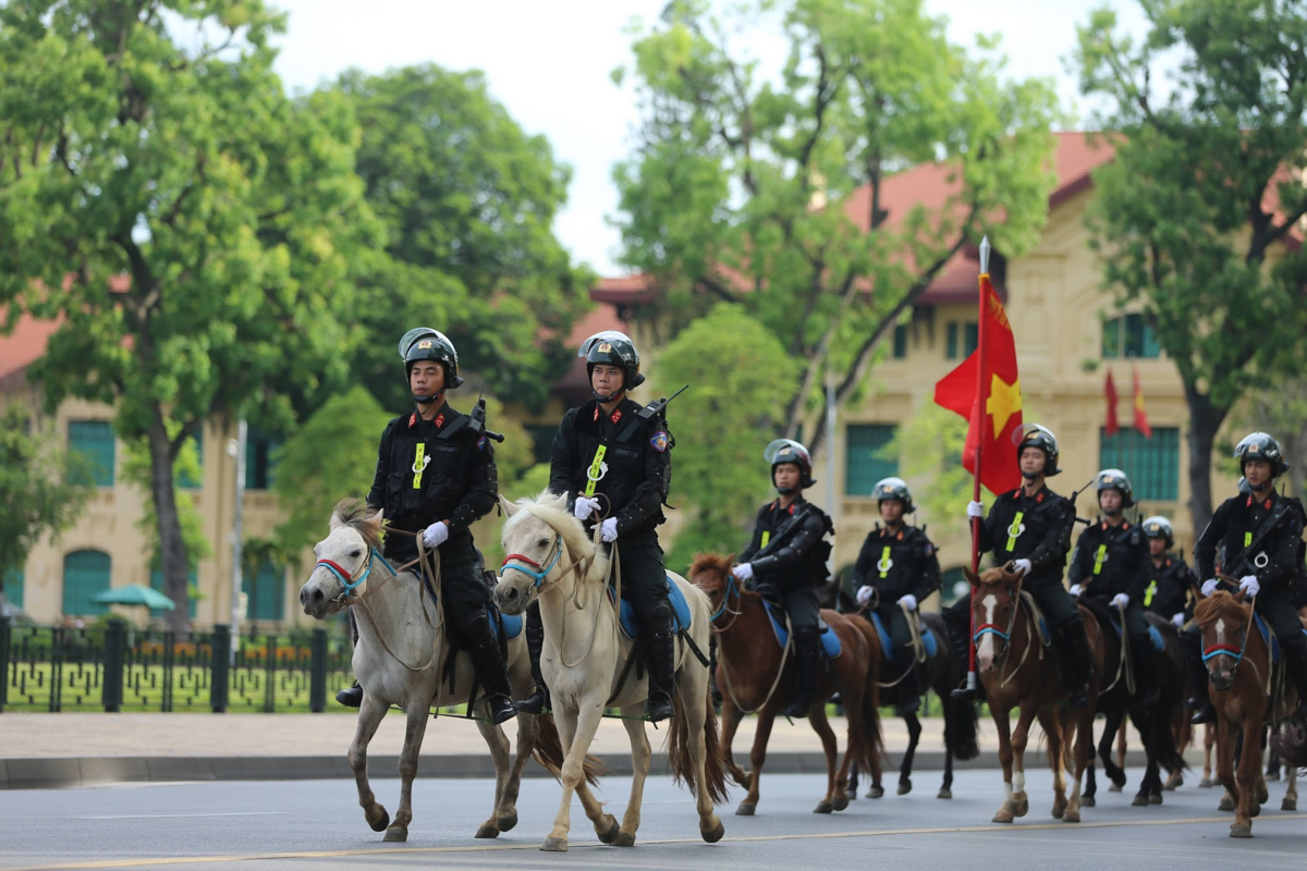 Trước đó, vào sáng 8/6, đoàn Cảnh sát cơ động Kỵ binh ra mắt và diễu hành trên đường Độc Lập, khu vực trước Lăng Bác và nhà Quốc hội.