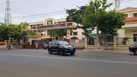 Xe của Bộ Công an rời trụ sở Công an tỉnh Bình Thuận sáng nay.