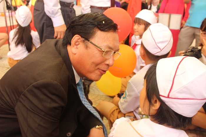 | Các em học sinh hân hoan chào đón Bộ trưởng Phạm Vũ Luận |