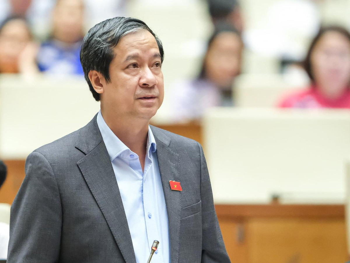 Bộ trưởng GD&ĐT Nguyễn Kim Sơn báo cáo trước Quốc hội. (Ảnh: Quochoi.vn)