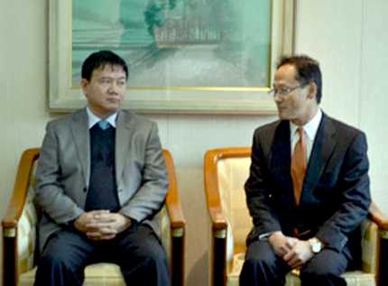 | Bộ trưởng Bộ GTVT Đinh La Thăng làm việc với ngài Kitano Mitsuru - Tham tán, Công sứ Đại sứ Nhật Bản tại Việt Nam. |