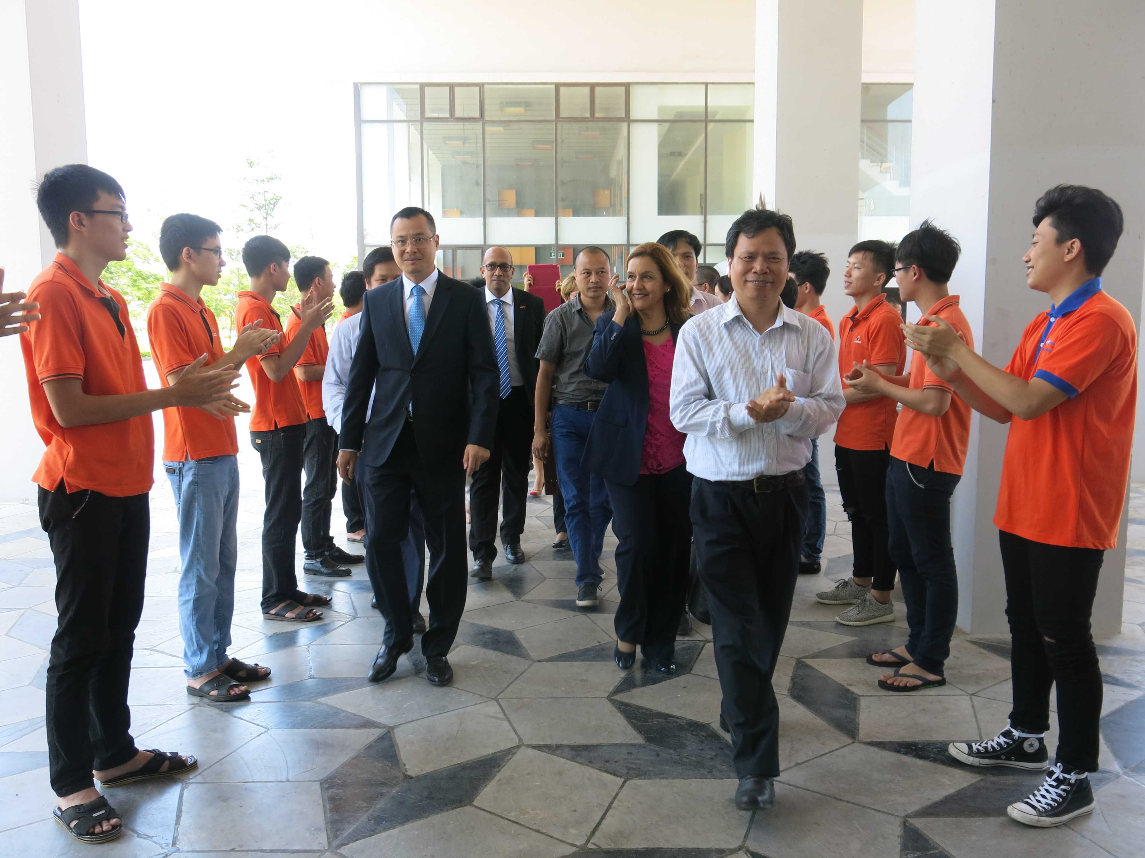 Chuyến thăm và làm việc tại ĐH FPT, cơ sở Hòa Lạc kéo dài gần 1 giờ đồng hồ tập trung chia sẻ và trao đổi về mô hình đào tạo, quy mô sinh viên, môi trường học tập… tại ngôi trường này.