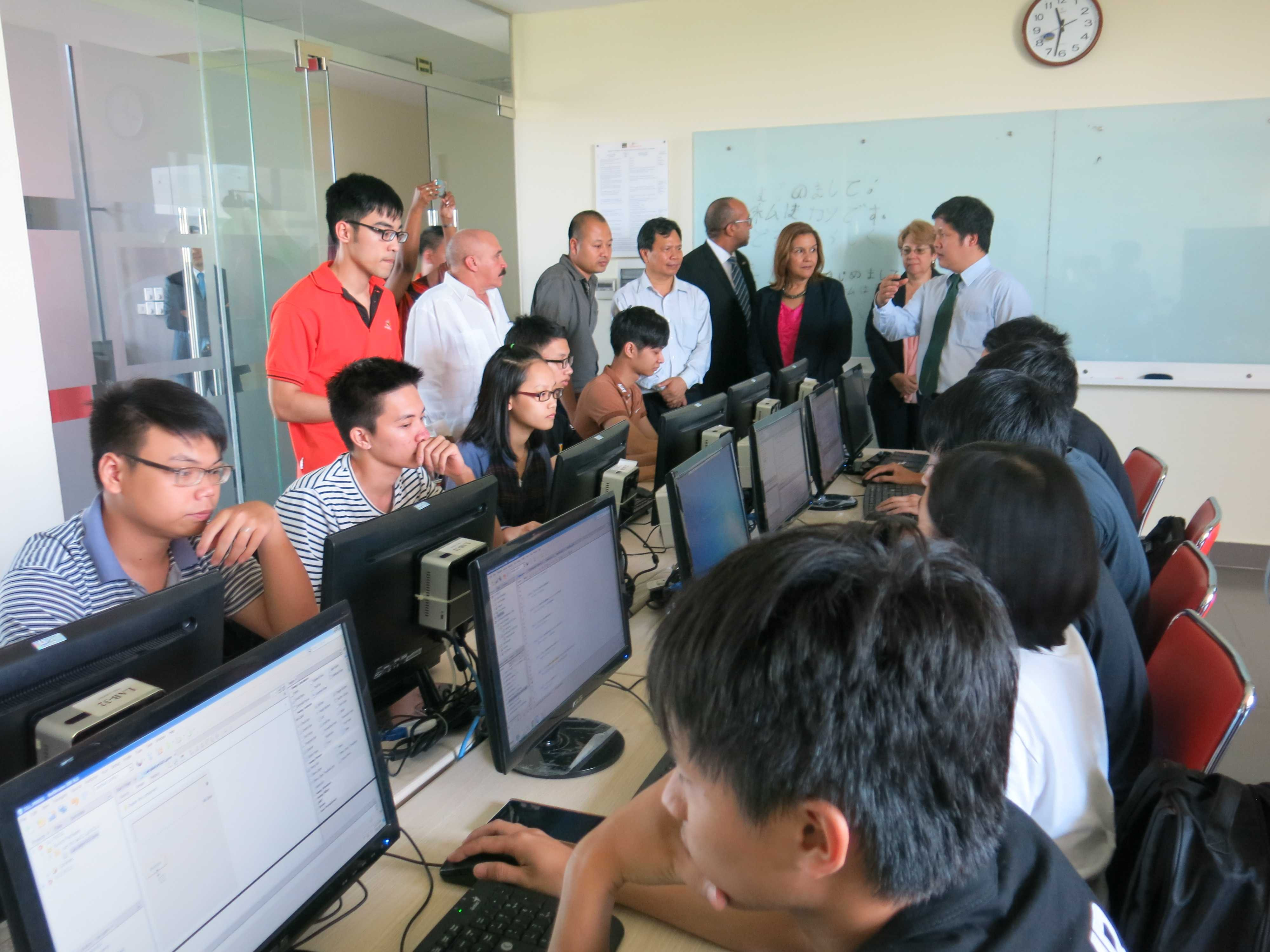 Sau đó đoàn đại biểu đã có mặt tại một lớp học chuyên ngành của sinh viên ngành Kỹ thuật phần mềm.