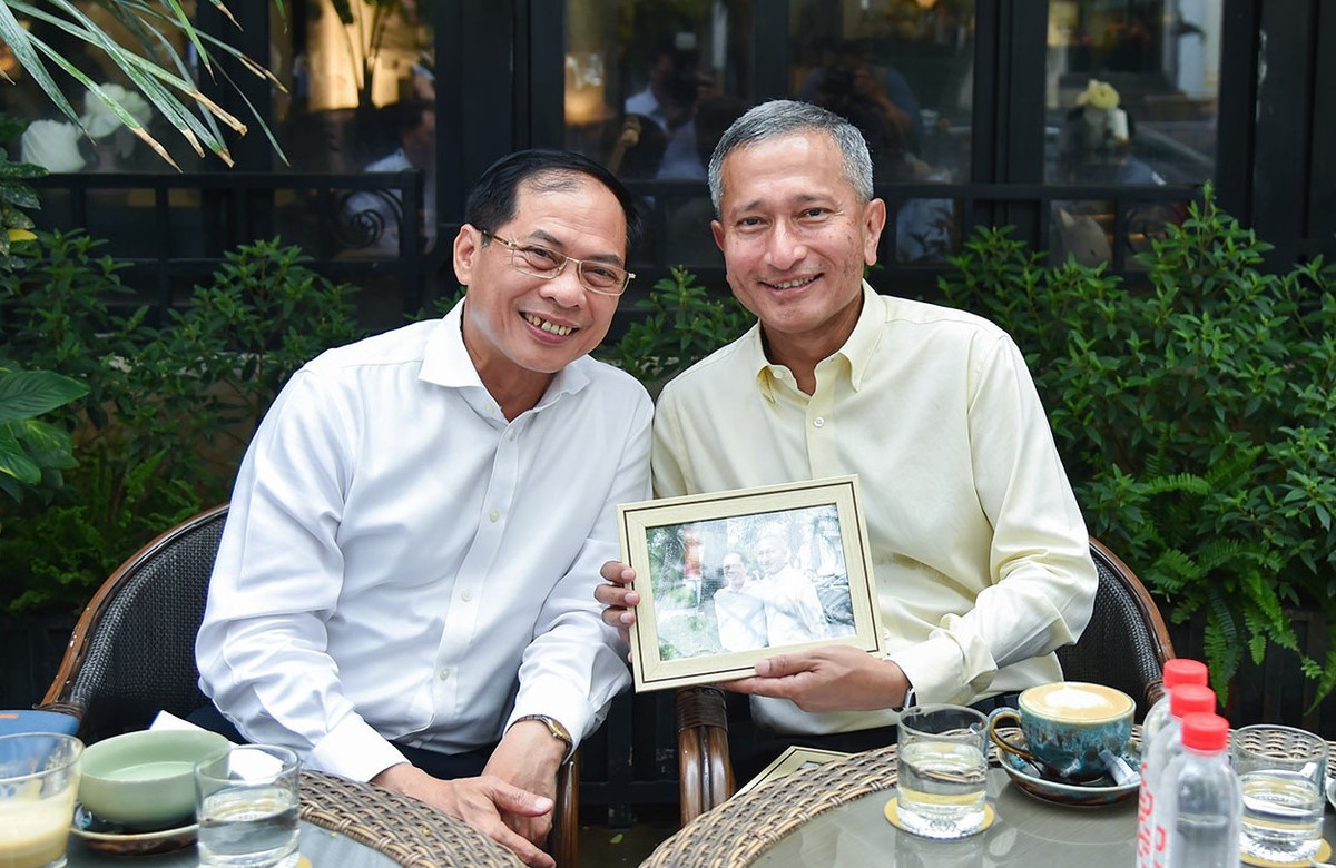 Sáng sớm 29/8, trong khuôn khổ chuyến thăm chính thức Việt Nam của Thủ tướng Singapore, Bộ trưởng Ngoại giao Bùi Thanh Sơn đã mời Bộ trưởng Ngoại giao Singapore Vivian Balakrishnan thưởng thức văn hóa ẩm thực truyền thống Việt Nam tại một nhà hàng trên phố Lý Thường Kiệt.