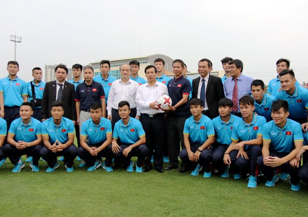 Bộ trưởng Bộ Văn hóa, Thể thao và Du lịch Nguyễn Ngọc Thiện thăm U20 Việt Nam.