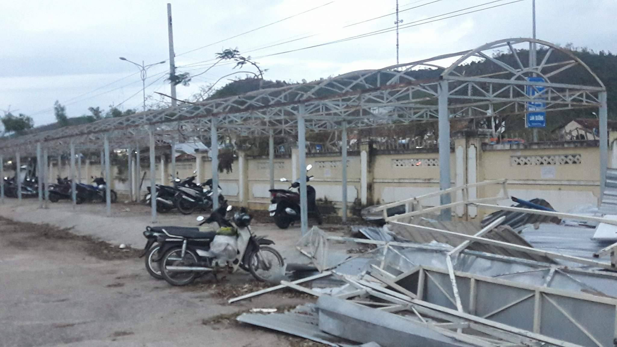 Mái của nhà để xe trong BVĐK khu vực Ninh Hòa đã bay hoàn toàn