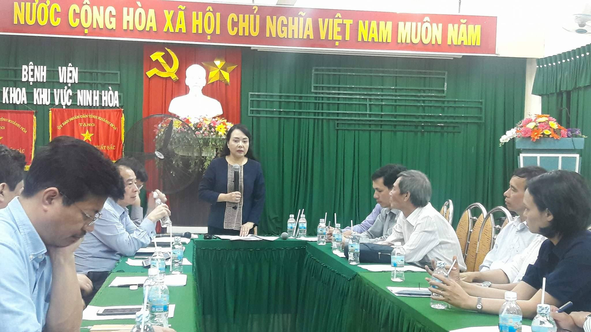Ngay sau đó, Bộ trưởng và đoàn công tác đã đến thị sát và làm việc tại BVĐK Khu vực Ninh Hòa. BS Trương Phước An - Giám đốc BVĐK khu vực Ninh Hòa cho biết, do đã dự trù đầy đủ cơ số thuốc, chuẩn bị đầy đủ nhân lực nên khi bệnh nhân nhập viện đông, BV tiến hành cấp cứu, điều trị kịp thời, không có ca nào tử vong.