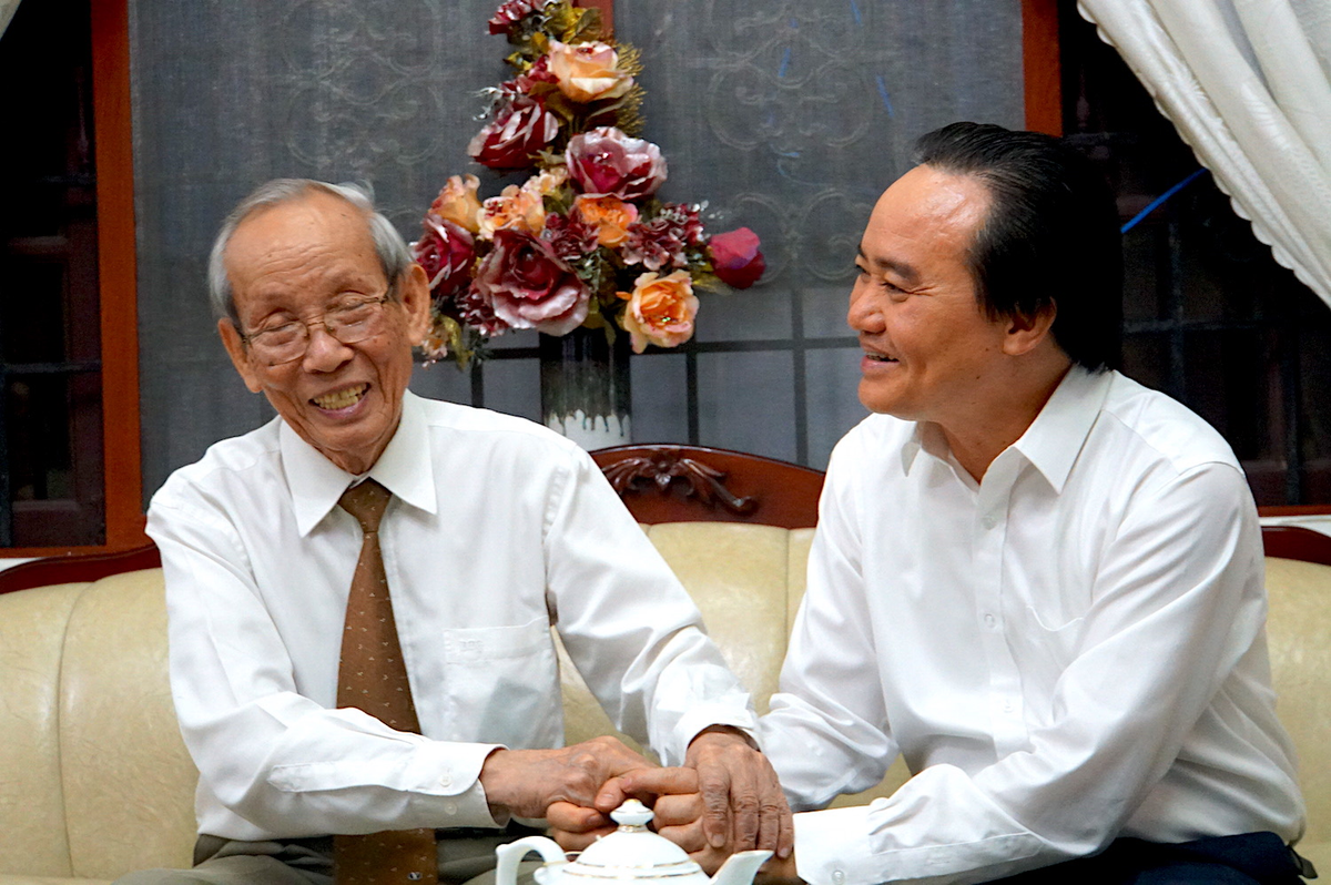 Bộ trưởng Phùng Xuân Nhạ hỏi thăm, chúc mừng nguyên Bộ trưởng Trần Hồng Quân.