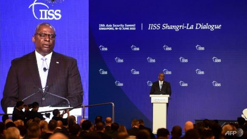 Bộ trưởng Quốc phòng Mỹ Lloyd Austin phát biểu tại Đối thoại Shangri-La ở Singapore vào ngày 11/6.
