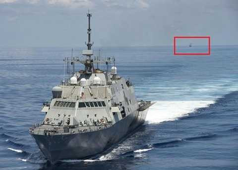 | Tàu chiến Trung Quốc (khoanh đỏ) bám theo tàu chiến Mỹ |