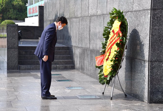 Bộ trưởng Quốc phòng Nhật Bản Kishi Nobuo tới đặt vòng hoa tại Lăng Chủ tịch Hồ Chí Minh.