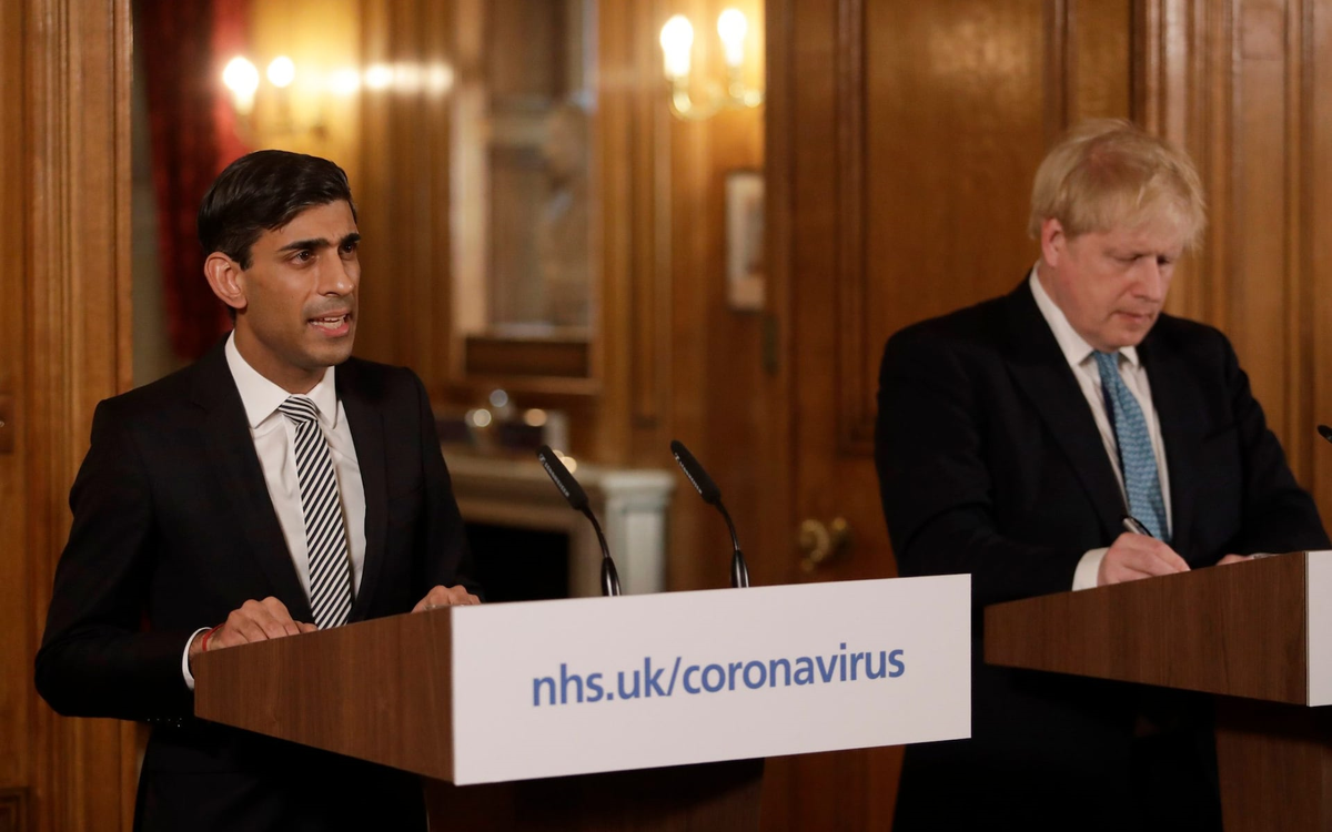 Bộ trưởng Tài chính Rishi Sunak đứng gần Thủ tướng Anh khi ông Johnson tri ân các nhân viên y tế. (Ảnh: Reuters)