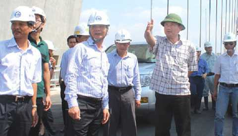 | Bộ trưởng Đinh La Thăng kiểm tra tiến độ và chất lượng cầu Nhật Tân |