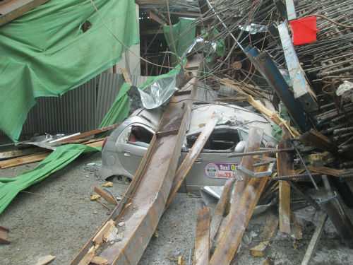 | Chiếc taxi bị sắt thép, bê tông đè bẹp |