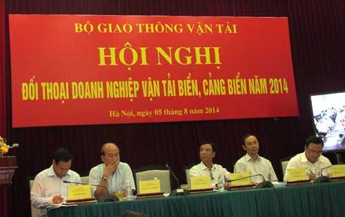 Sáng nay (5/8), Bộ Giao thông Vận tải tổ chức hội nghị đối thoại doanh nghiệp vận tải biển, cảng biển năm 2014. Hội nghị được kết nối trực tuyến tại các điểm cầu TP HCM, Hải Phòng, Đà Nẵng do Bộ trưởng Đinh La Thăng chủ trì.