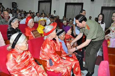 | Bộ trưởng Trần Đại Quang thăm hỏi, tặng quà các Mẹ Việt Nam Anh hùng tỉnh Ninh Bình, ngày 26/7/2015. |