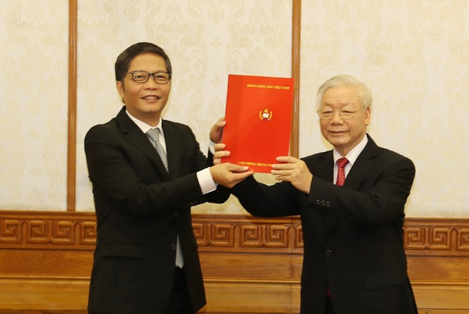 Tổng Bí thư, Chủ tịch nước Nguyễn Phú Trọng trao quyết định cho ông Trần Tuấn Anh. (Ảnh: TTXVN)